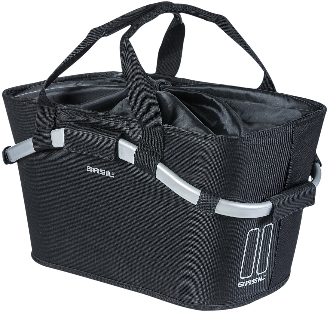 - Grofmazig / Fijnmazig: Nvt De Basil Classic Carry All Rear Basket is een echte design fietsmand in een zwarte kleur. Hij is geschikt voor een damesfiets. De lichtgewicht fietsmand bevestig je eenvoudig op je bagagedrager. Ook op bagagedragers van elektrische fietsen. De shopping mand wordt inclusief MIK Adapterplate geleverd. De mand met voorgemonteerde plaat klik je eenvoudig in je MIK systeemdrager of een MIK Carrierplate. De Basil Classic Carry All Rear Basket is makkelijk afneembaar en neem je dus heel handig mee de winkel in. Ideaal voor al je boodschappen! Met het aansnoerkoord houd je vervolgens de boodschappen op hun plek. Dankzij de aluminium beugel met curve kun je een afschuining aan zadelzijde maken. Zo kun je comfortabel fietsen! De afgeschuinde zorgt ervoor dat de fietsmand zover mogelijk naar je zadel maar er niet tegenaan!- bevestigd kan worden. De mand is gemaakt van waterafstotend polyester en beschikbaar in vijf dessins. Wil je de achtermand combineren met een mandje voorop? Dat kan! In hetzelfde materiaal en dezelfde kleur hebben wij ook een mandje voor voorop: