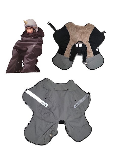 TECHNISCHE BESCHRIJVING: – Thermoshell compatibel met fietszadels achterop - – Aanpasbaar aan kinderen van 68 tot 104 cm, van 9 tot 22 kg, dankzij een verstelsysteem met drukknopen – Eenvoudig verankeringssysteem aan het zitje via klittenband – Snel open/dicht systeemschaal voor positionering/ het kind uitnemen - Buitenkant van wind- en waterdicht polyester met een hoge waterkolom - Binnenkant van eco-bont met polyester vulling - Getapete naden - Verwisselbare cape die verwijderd kan worden uit het voorvak geïntegreerd in het voorvak, ook te gebruiken als hoes – zitting – Verwisselbare regenkap afneembaar van de cape.– Kap met fantasiethema inbegrepen in de volgende kw – Fluogele kap inbegrepen in de kleur zwart variant – Gewatteerde zitting voor meer comfort– Ingebouwd antidiefstaloog – Reflecterende profielen – Belangrijkste materialen getest volgens REACH-normen – Gepatenteerd product • Waterdicht 5000 mm