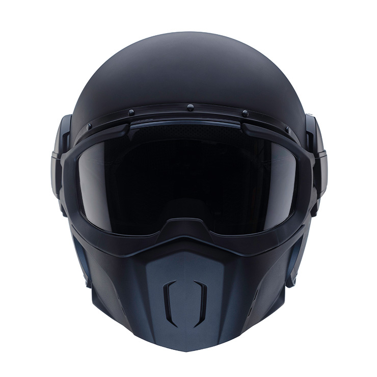 De Caberg Ghost X jethelm combineert een opvallend, ruig design met slimme functionaliteit. Deze open‑face helm is uitgerust met een goggle‑vormig anti‑scratch en anti‑fog vizier dat nauw aansluit op je gezicht, aangevuld met een beschermend masker voor extra bescherming tegen wind, insecten en weer.