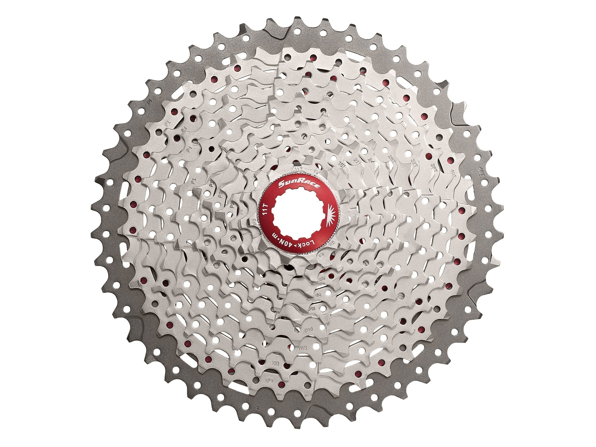 11 speed Sunrace cassette, geschikt voor gebruik met Shimano / Sram body.