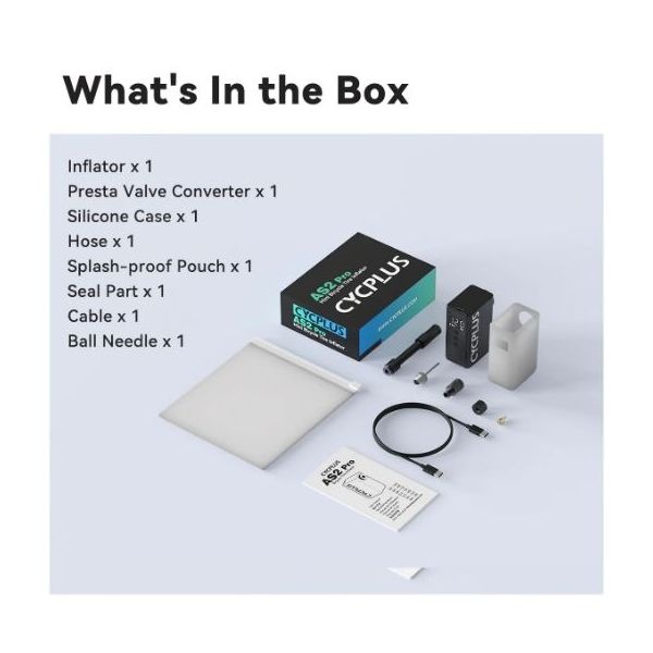 Draagbaar en lichtgewicht De Cycplus AS2 Pro beschikt over geavanceerde functies en een duidelijk display, waardoor het oppompen van je banden eenvoudig en snel gaat. Ondanks zijn krachtige prestaties blijft de AS2 Pro uitzonderlijk compact. Met een gewicht van slechts 120 gram is deze pomp niet alleen handig maar ook stijlvol, en hoef je niet langer afhankelijk te zijn van losse CO2-patronen.