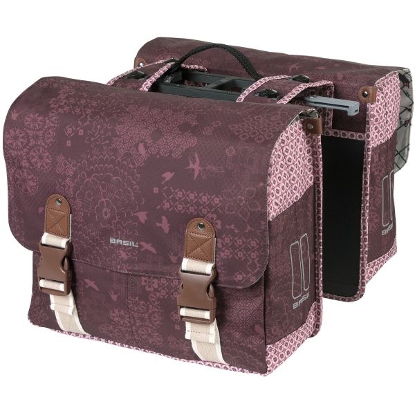 De Basil Bohème dubbele fietstas is een fietstas die opvalt door het unieke design van abstracte bloemen en vogels en is een leuke aanwinst voor een damesfiets. De functionele fietstas in de kleur groen is een aanwinst bij het doen van boodschappen. De tas komt echter ook van pas bij het maken van een lange fietsrit, want zo kun je er je lunchpakketje en regenkleding in kwijt. De fietstas, met een totale inhoud van 35 liter en binnenvoering, is gemaakt van waterafstotend polyester. De Basil Bohème krijgt extra uitstraling dankzij de kunstlederen details en sluit je gemakkelijk af met het aansnoerkoord. De fietstas wordt geleverd inclusief MIK Adapterplaat (70171) en is daardoor geschikt voor MIK-systeemdragers en -draagplaten. Tenslotte is de Basil Bohème-fietstas voorzien van reflectie op alle zijden, zodat je beter zichtbaar bent in het donker. Vaste montage: met behulp van de meegeleverde riempjes. Afneembaar: in combinatie met een adapterplaat. Geschikt voor adapterplaten van MIK en Racktime platen. Deze adapterplaten dien je apart aan te schaffen.