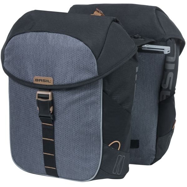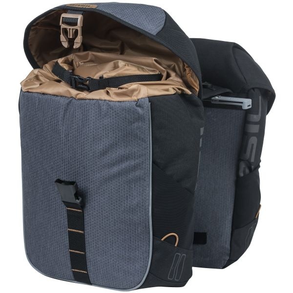 - De Basil Miles Double Bag is een dubbele fietstas met een totale inhoud van 34 liter.