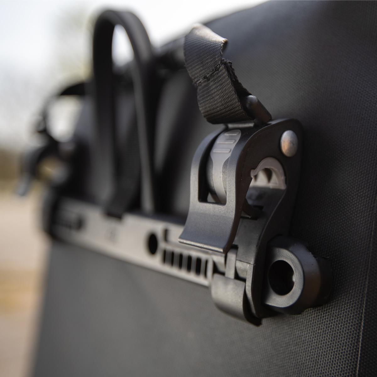 Voor het opbergen van de grote spullen gebruik je het hoofdvak in de fietstas, welke je sluit middels een rolsluiting. De kleinere spulletjes, zoals je sleutels of bijv. de fietscomputer, kunnen in het voorvak met rits of aan de binnenzijde in het opbergtasje, welke met klittenband uitneembaar is. Moet je verder te voet? Klik dan de schouderband aan de Hayes en draag hem mee als schoudertas naar iedere locatie.