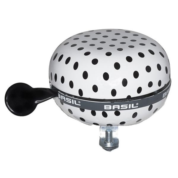 - De Basil Big Bell Polkadot heeft een wit-zwarte kleur en is bovendien leverbaar in 4 verschillende kleuren. De contrasterende stipjes geven de bel een opvallende uitstraling.