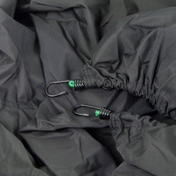 FIETSHOES VOOR 2 FIETSEN Optimale bescherming tegen regen, stof, vuil, ijs, sneeuw en hitte, verontreiniging van bomen en tegen het dof worden van de lak. Zowel geschikt voor transport op fietsdrager als voor het parkeren van een fiets. Polyester. Met elastische zoom en bevestigingshaken voor een perfecte pasvorm. Eenvoudig aanbrengen en vastzetten. Geschikt voor 2 fietsen, ongeacht het model.