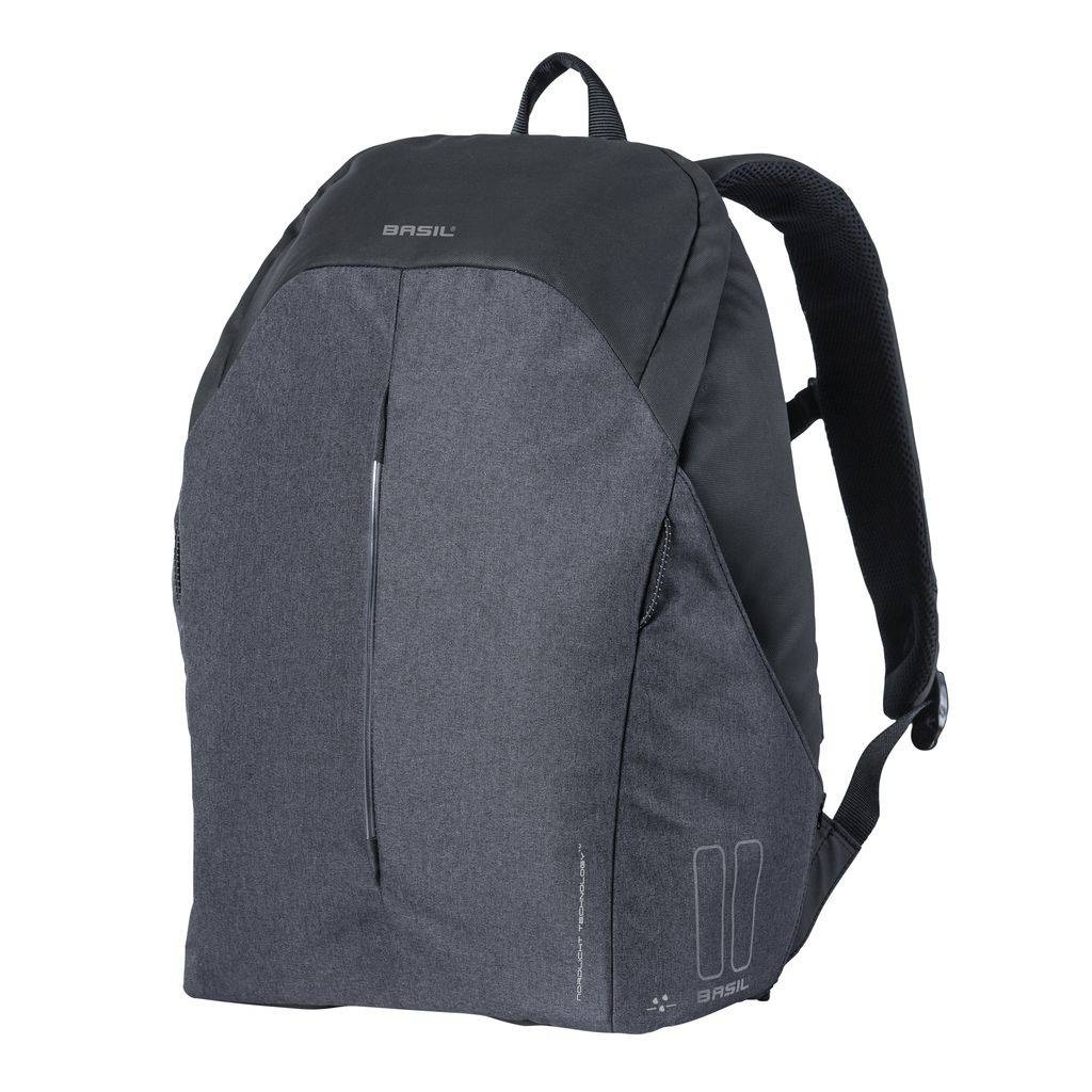 De Basil B-Safe Backpack Nordlicht is een moderne fietsrugzak met allerlei slimme functies. De graniet zwarte rugtas is geschikt voor zowel mannen als vrouwen. De Basil B-Safe Backpack Nordlicht heeft een inhoud van 18 liter en is een opvallende fietsrugzak met diverse innovaties. Fietsrugzak? Ja, een fietstas en rugzak in één! De tas heeft een anti-diefstal constructie door een verborgen rits en diverse verborgen vakken. Zo neem jij jouw spullen veilig mee! De tas biedt ruimte aan een 15.6 inch laptop en iPad. Ook een E-bike oplader en diverse kleine accessoires neem je handig mee. Zo zit er een verborgen vak op een schouderband voor je OV-kaart (psst, niet verder vertellen hè!). En met de USB-poort laad jij je smartphone op. Een andere slimme functie is de LED-verlichting aan de voorzijde van de tas (Nordlicht Technology)*. De Basil B-Safe Backpack heeft gewatteerde schouderbanden en volledig gewatteerde achterzijde. Zo draag je de rugzak erg comfortabel. Het borstbandje houdt de schouderbanden bij elkaar, ook tijdens het fietsen. Je haakt de tas eenvoudig aan de bagagedrager van je (elektrische) fiets met behulp van het Hook-On systeem. Doordat je de tas aan je bagagedrager meeneemt, voorkom je dat je zweterig op je bestemming aankomt. En omdat het gewicht van de tas een stuk lager zit, fiets je veel stabieler (en daarmee veiliger). Handig, zo n fietsrugtas! Dit alles maakt de B-Safe rugzak perfect voor woon-werkverkeer.