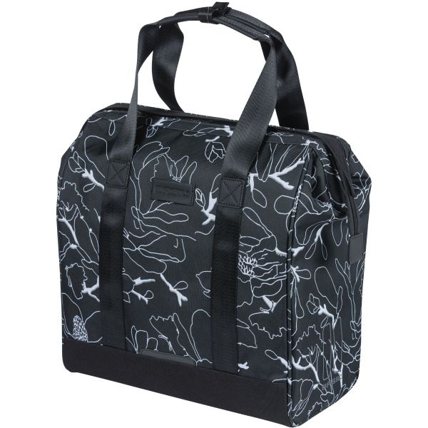 Met de Basil Grand fietsshopper wordt boodschappen of andere inkopen doen een feestje. Hij ziet er namelijk stijlvol en luxe uit, mede dankzij de zwarte kleur en de fleurige bloemenprint. Bovendien is hij gemaakt van waterafstotend 600D polyester en beschikt de shopper over een groot hoofdvak inclusief een gepolsterd (laptop)vak. Handig voor je studie aan de universiteit of voor je kantoorwerk. Met 23 liter inhoud kan je er dan ook de nodige boodschappen of andere spullen in kwijt. De tas is vormvast en dankzij de grootte kun je er met gemak pakken drinken staand in kwijt. De Basil Grand fietsshopper heeft een zogenaamde dokterssluiting, een extra grote opening zodat je de ruimte hebt voor het inpakken van de shopper. Je bevestigt de shopper aan je fiets met het Hook On systeem. Tip: ga je fietsen? Zet dan de handgrepen vast met het lusje aan het logo. Zo voorkom je dat de handgrepen gaan wapperen.