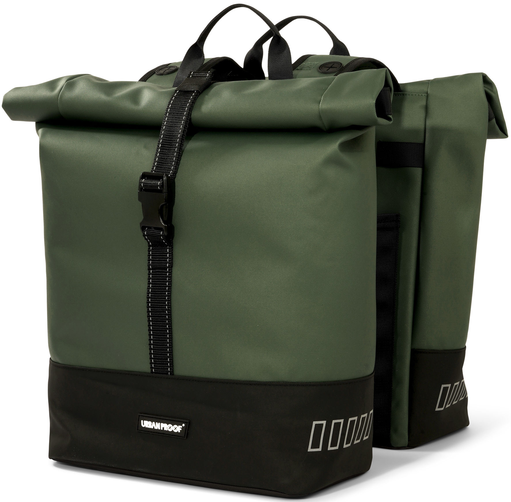 Gerecyclede dubbele fietstas Urban Proof Rolltop 38 liter 30 x 15 x 42 cm - groen
