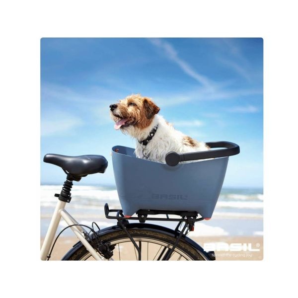 De Basil Buddy hondenfietsmand is gemaakt van kunststof en is verkrijgbaar in de kleur faded denim. Maak je graag een fietsrit in de omgeving met je hondje of gaat hij altijd met jou mee als je boodschappen doet? Dan is de Basil Buddy hondenfietsmand de uitkomst! De afmetingen van de mand bedragen 45 x 32 x 22 centimeter, dus hij is geschikt voor kleinere honden. De mand wordt geleverd inclusief kussentje, Basil Keep in place reflective en riempje om je viervoeter veilig vast te zetten. Dat is ideaal als je op bezoek bent geweest bij de dierenarts of als je in het drukke verkeer van de stad fietst. De mand beschikt over een verstelbare beugel die je eenvoudig bevestigt op de bagagedrager van een dames- of herenfiets. Ook kan je hem monteren op een elektrische fiets. Je aankoop wordt bovendien geleverd inclusief een MIK systeem, zodat de hondenfietsmand op bijna elke bagagedrager past. Wil jij je trouwe viervoeter op een veilige manier vervoeren op je fiets? Kies dan voor de Basil Buddy hondenfietsmand. De mand is gemaakt van veilig, niet giftig en duurzaam kunststof gemaakt. Neem ook eens een kijkje bij de overige Basil producten als je meer interessante fietsaccessoires kunt gebruiken. Je treft ze elders aan op de website.