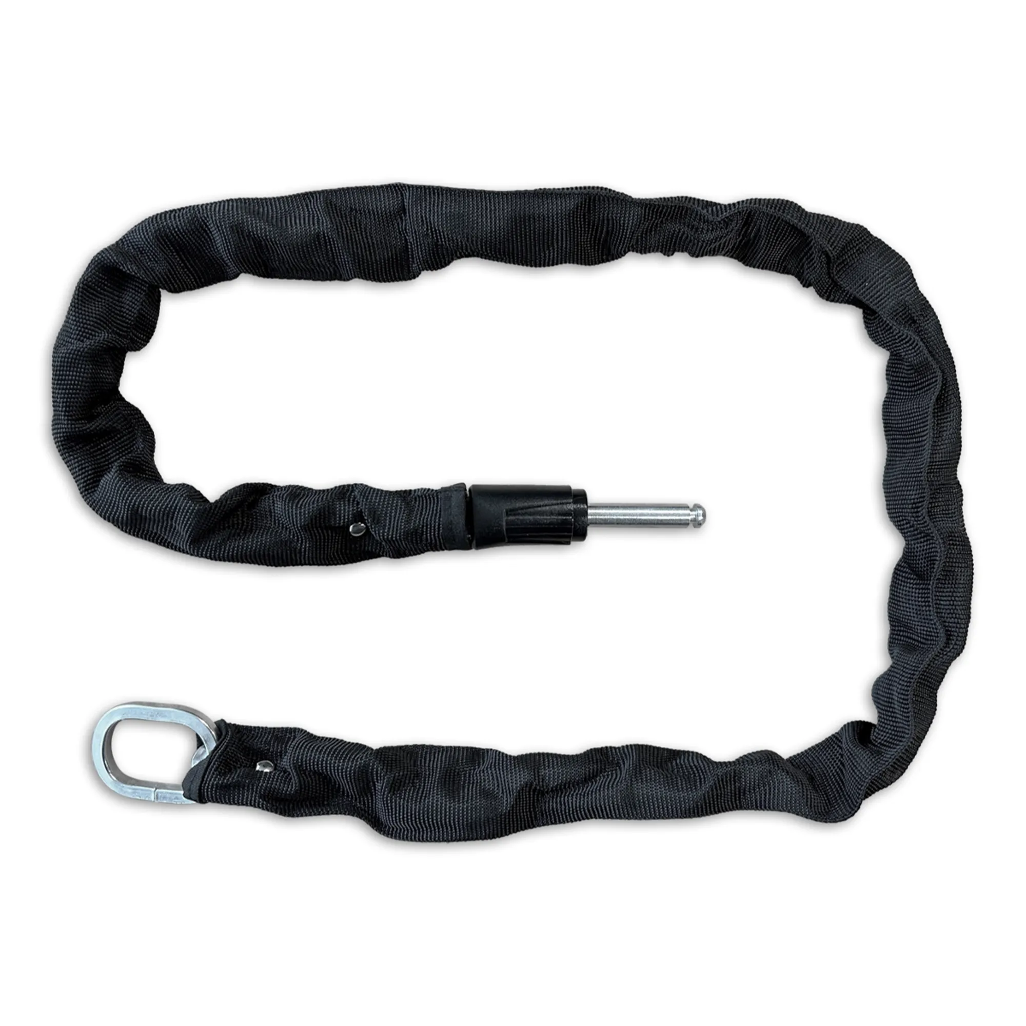 De insteekketting heeft een lengte van 120 centimeter, waardoor het eenvoudig aan een lantaarnpaal of hek vast te leggen is. De 5.3 millimeter dikke geharde stalen schakels in combinatie met de plug-in pin, zorgen voor een goede diefstalbescherming. De schakels zijn omhult met een zachte nylon hoes om het frame te beschermen tegen schade.
