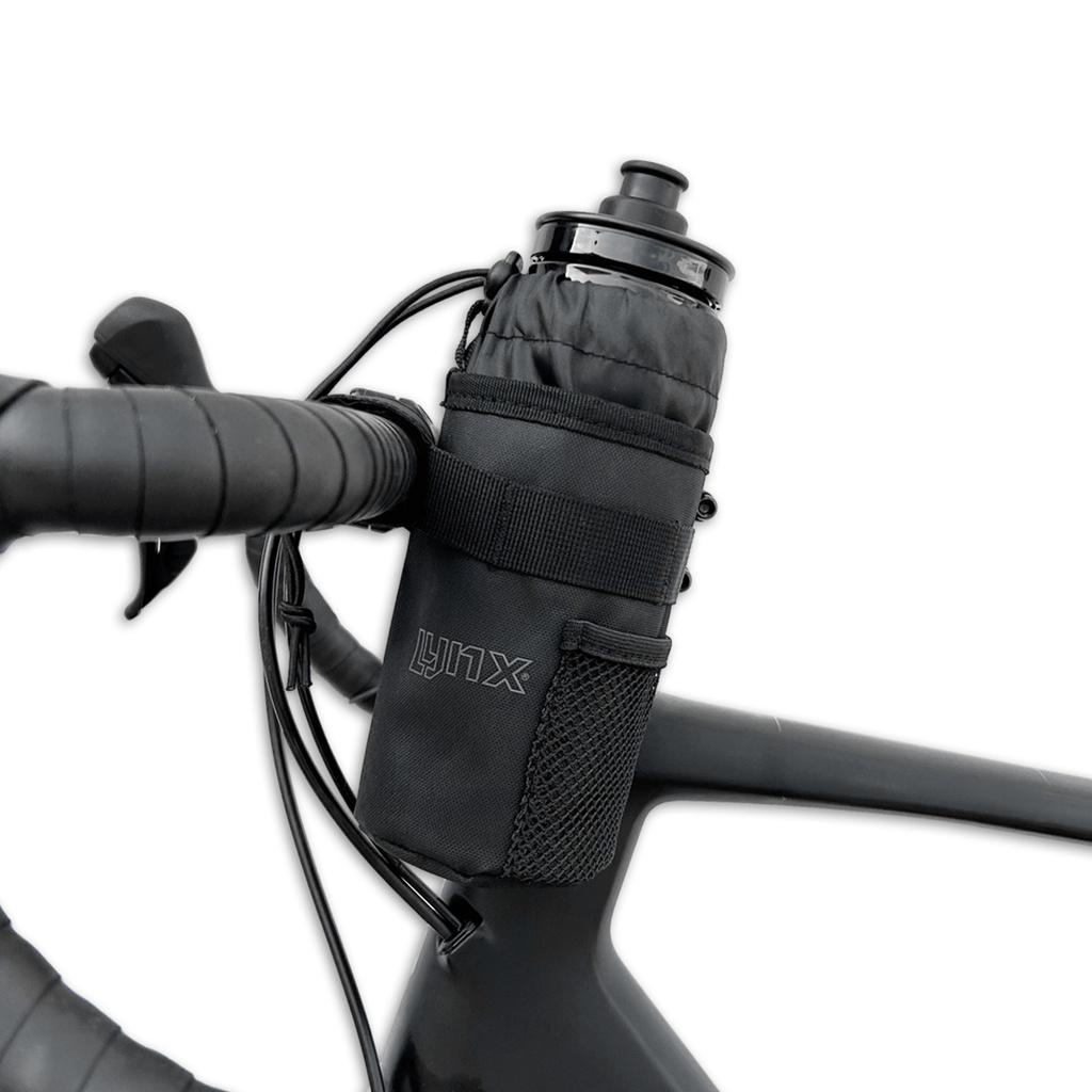 Deze flessenhouder stuurtas van Lynx is onderdeel van de Wildtrack-serie en speciaal ontwikkeld voor gebruik tijdens bikepacking met een mountainbike, gravelbike of racefiets. De tas wordt met drie verstelbare banden stevig bevestigd aan het stuur of de stuurpen en blijft stabiel op zijn plaats, ook op ruw terrein. Het hoofdvak is geschikt voor een bidon of thermosfles en is voorzien van een trekkoordsluiting voor snelle toegang en veilige afsluiting. Een extra mesh buitenvak biedt opbergruimte voor kleine accessoires of voeding. De tas is gemaakt van stevig en sneldrogend materiaal en is bestand tegen intensief gebruik in uiteenlopende omstandigheden.
