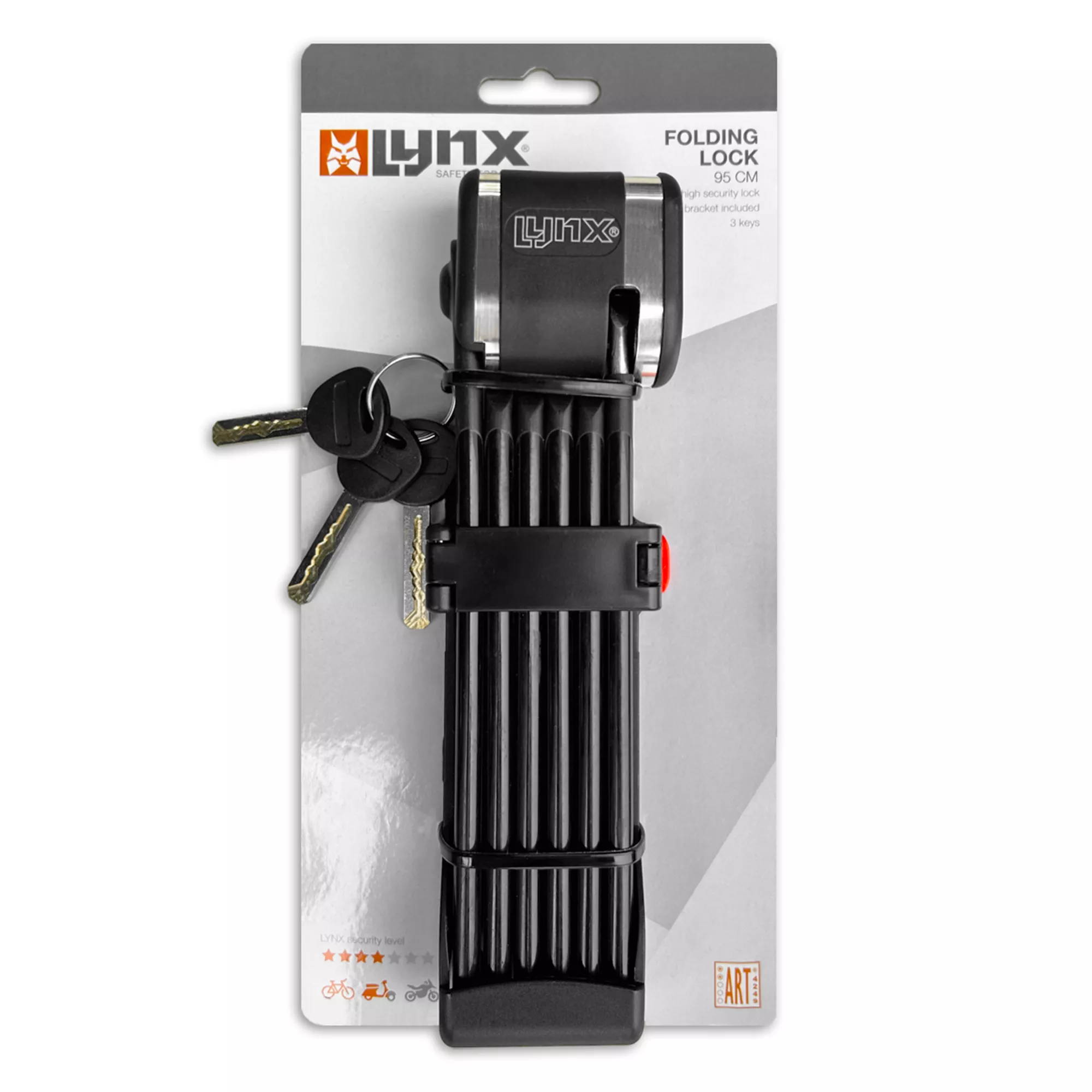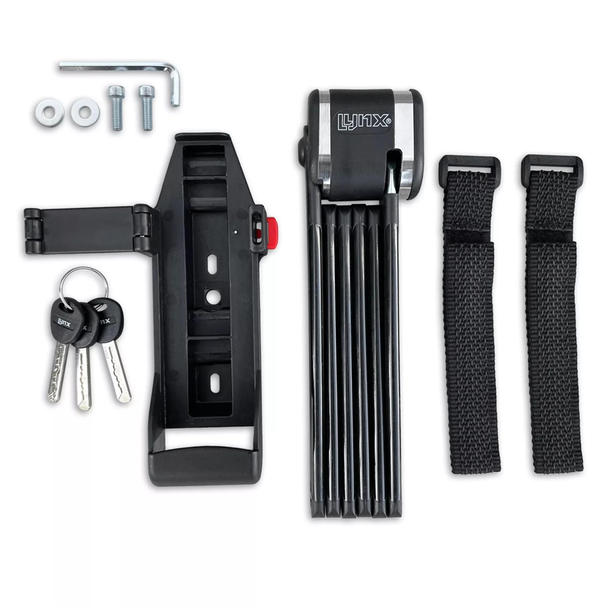 Het Lynx Pivot+ vouwslot is een hoogwaardige beveiligingsoplossing voor fietsen, e-bikes en fatbikes. Met het ART 2 keurmerk* voldoet dit slot aan strenge eisen op het gebied van duurzaamheid, weersbestendigheid en weerstand tegen aanvallen. De robuuste constructie en luxe afwerking met zilveren accenten maken het tot een aantrekkelijke en betrouwbare keuze voor iedere gebruiker.
