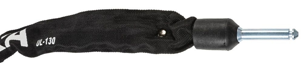 De ideale oplossing daarvoor is de ULC 130 Plug-in ketting. Met deze ketting bedien je het frameslot en de ketting met slechts 1 sleutel. Hij past in de AXA Imenso en Block XXL ringsloten. De diameter van de sluitingen is 5,5 mm en de gehard stalen plug-in pin is 10 mm dik. Hij heeft een lengte van 130 cm en heeft een zwarte polyester hoes om de fiets te beschermen tegen krassen.