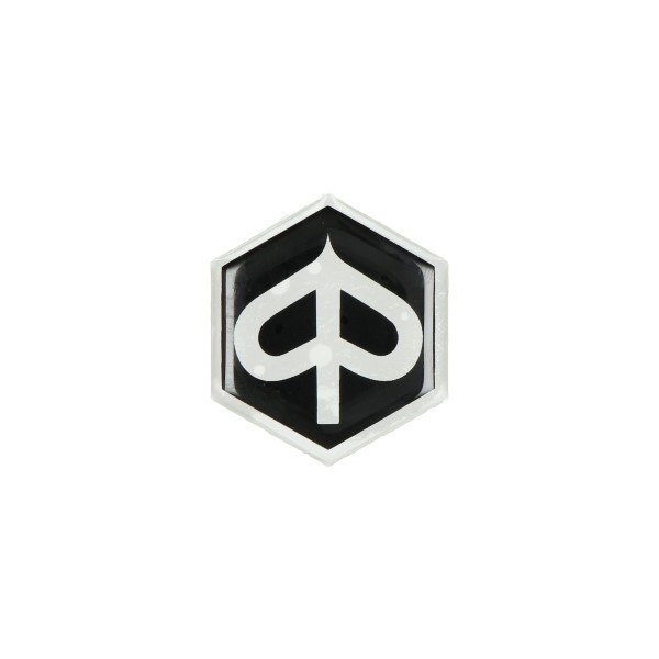 sticker logo voorscherm zeskant 3d zwart/transparant piaggio, zip 2t , zip 4t, zip2000, zip2000spLees meer
