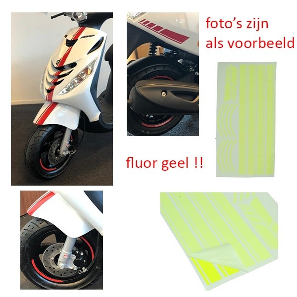 Stickerset Zijscherm Piaggio Zip 2000 Mercedes AMG Geel + Wiel stickers en Voorkap Stickers Compleet