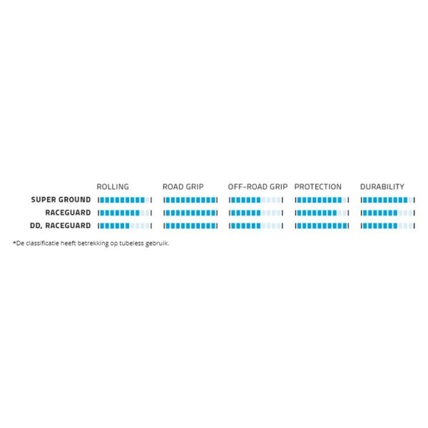 Het veelzijdige profiel rolt licht en trillingsarm, maar grijpt zich zeker en betrouwbaar vast op gravel en op droge trails.
