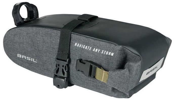 De Basil Navigator Storm zadeltas is een sportieve en compacte fietstas voor fietsers die enkel het hoognodige willen meenemen of de complete uitrusting van deze kwalitatieve waterdichte fietstassen wil hebben. Met de tassen uit de Navigator Storm collectie kan jij iedere fietstocht aan! In deze uiterst handige zadeltas past meer dan je denkt. De reflecterende logo's op de zijden van de tas maken je beter zichtbaar voor andere verkeersdeelnemers. Daarnaast kan je extra LED-verlichting aan je tas hangen. Zo kom je altijd veilig thuis. De tas bevestig je makkelijk zelf onder het zadel van je fiets met de klittenband. Ook valt ieder weer te trotseren dankzij de waterdichte (IPX3) stof. Je zadeltas blijft hierdoor niet alleen droog, maar ook nog eens schoon voor opspattend vuil! De bodem van tarpaulin is ook makkelijk schoon te vegen, zo blijft jouw tas zo goed als nieuw.